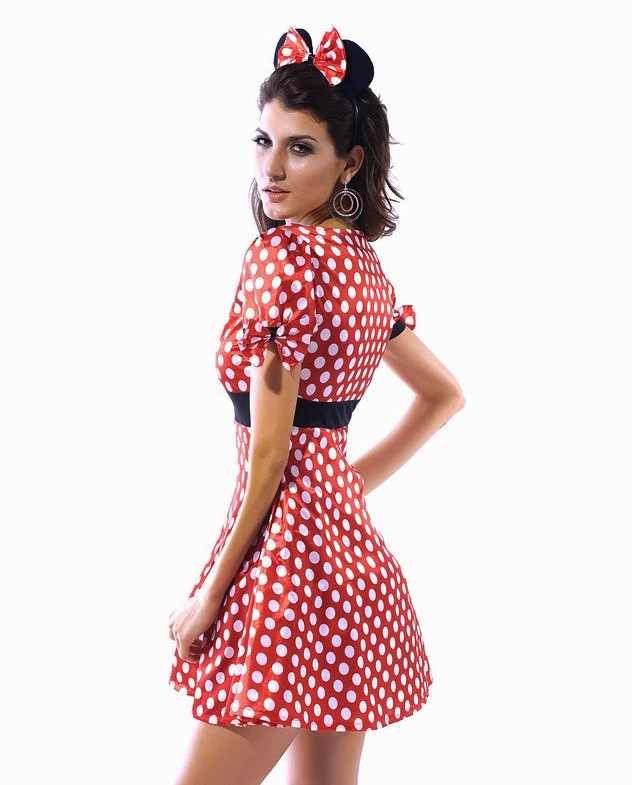 This adorable mouse costume includes a mini dress and bow ears. Acrylic and spandex offer a durable fit to wear for a long time. One size fits most.